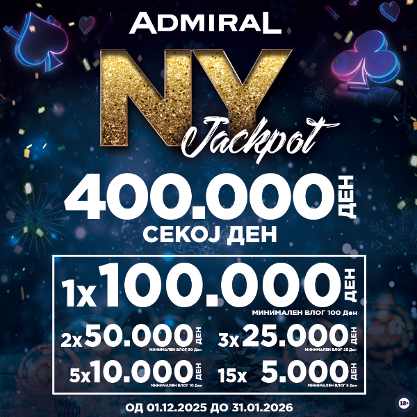 Во своeто портфолио ADMIRAL има голем број на џекпоти и бонуси, прогресивни и временски, глобални и локални. Со регистрирање на софистицираниот БОНУС СИСТЕМ, секој логиран играч се стекнува со право на посебни бенефиции.