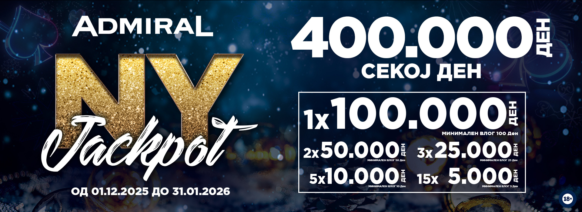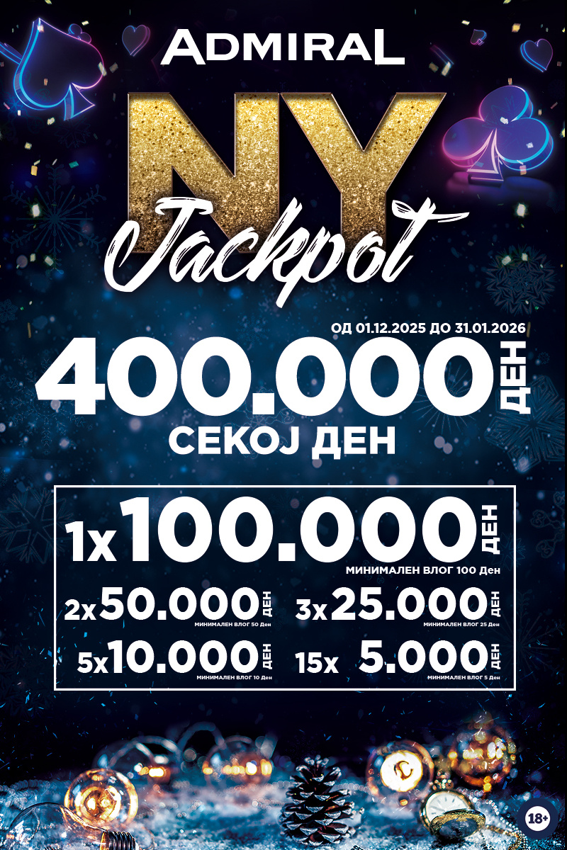 Во своeто портфолио ADMIRAL има голем број на џекпоти и бонуси, прогресивни и временски, глобални и локални. Со регистрирање на софистицираниот БОНУС СИСТЕМ, секој логиран играч се стекнува со право на посебни бенефиции.
